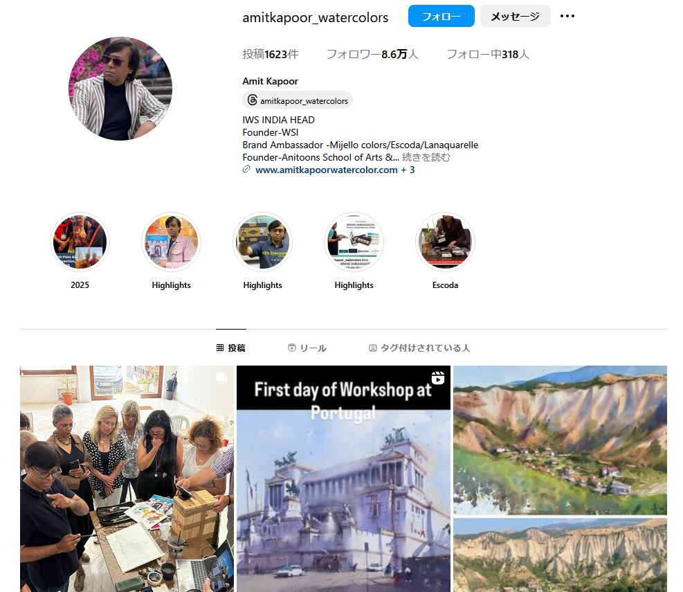 インスタで最近ハマっているのはインドのAmit Kapoor先生です。展覧会やワークショップのため世界中を駆け回っているようなのですが、時々インスタでライブ配信をやっていて、リアルタイムで見られたりすると「おおーっ」となります(笑)。インドだけでなくヨーロッパやアメリカでも個展やワークショップを開いているようなのですが、今のところ日本では皆無…誰か連れてきてくださーい!