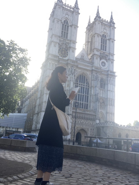 地下鉄を降りてウエストミンスター寺院に向かっていると、何かのイベントなのか中世の衣装を着た男性たちが何人もいたのが「異空間!」という感じで、これは絶対作品にしたいと思いました。(この後、「いにしえの」という作品になりました)