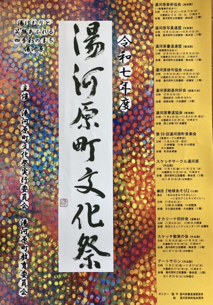 湯河原にて活動する文化団体、音楽、演劇、書道、美術などのサークルが活動発表の場として町内各地でイベントを行います。
