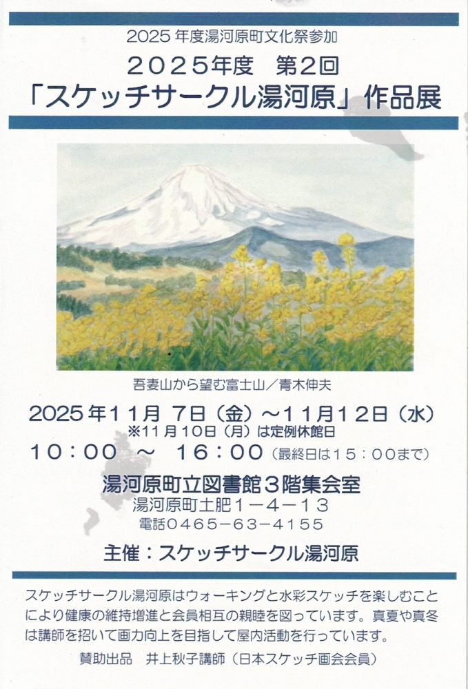 今年も、講師を務めているスケッチサークル湯河原の展覧会に賛助作品を出品します。